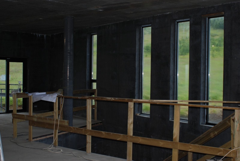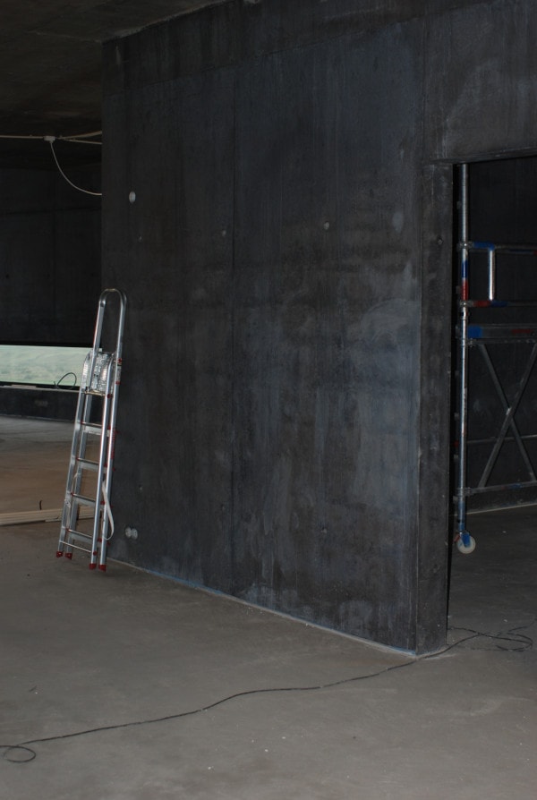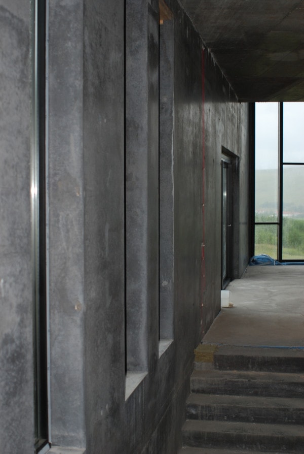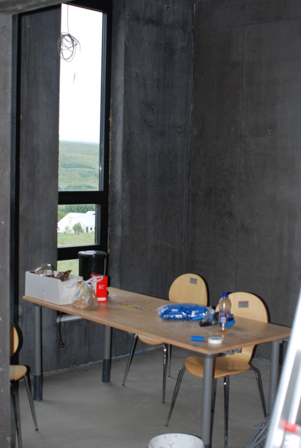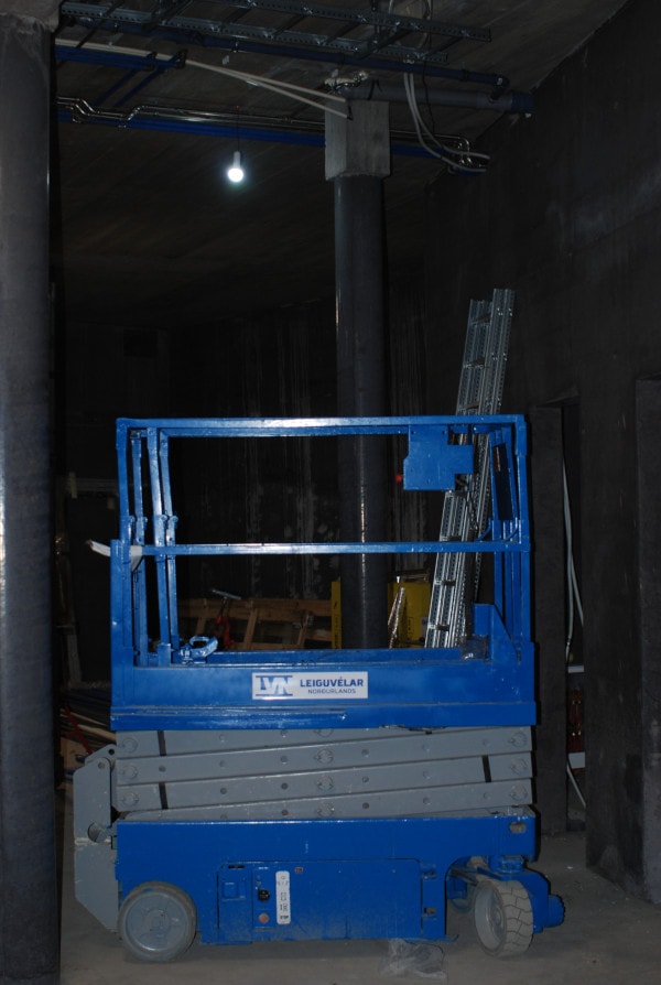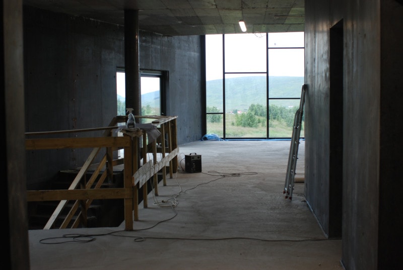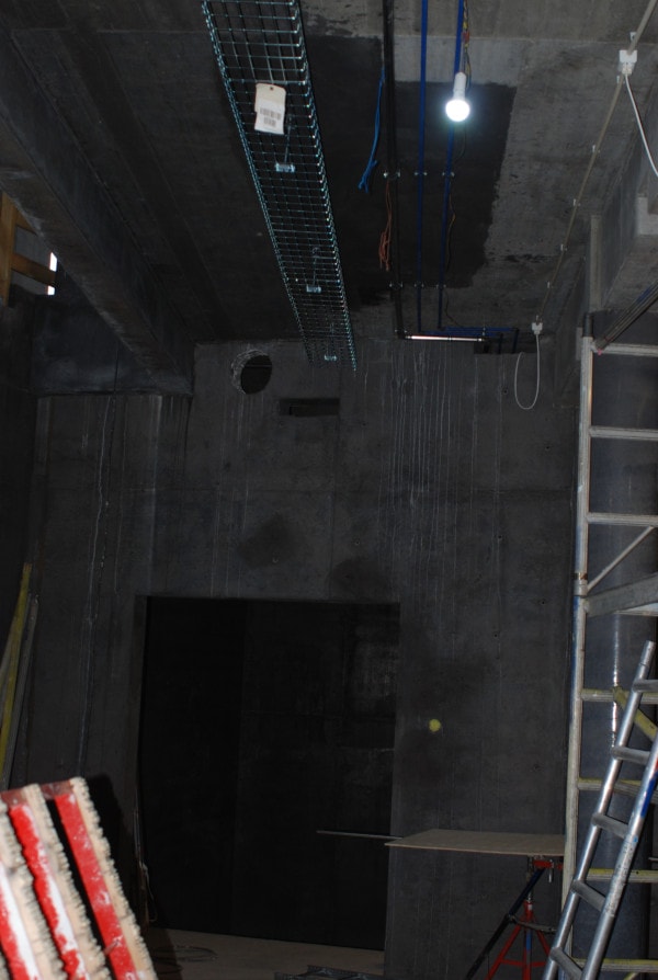 Inside the building during the construction phase.